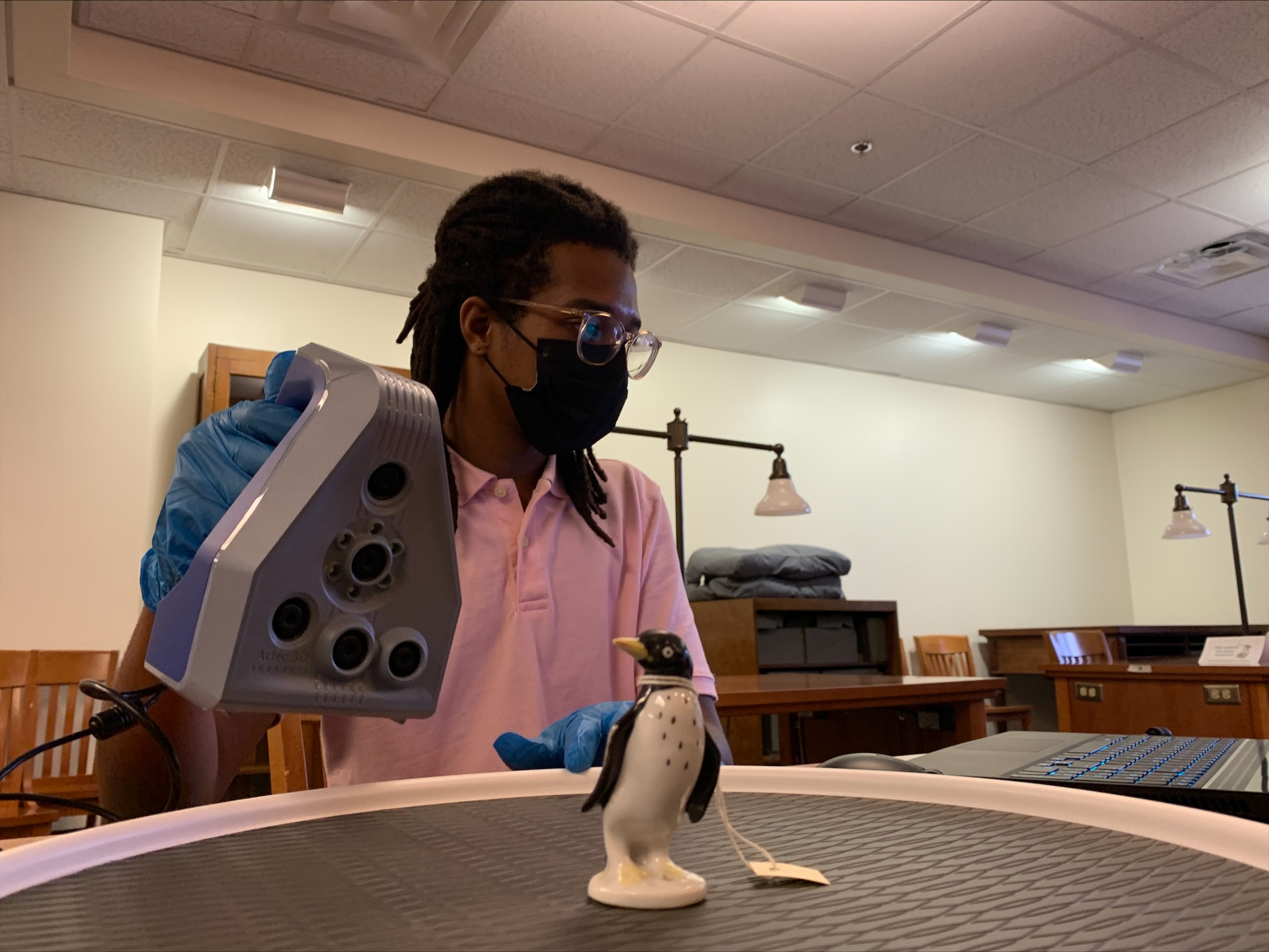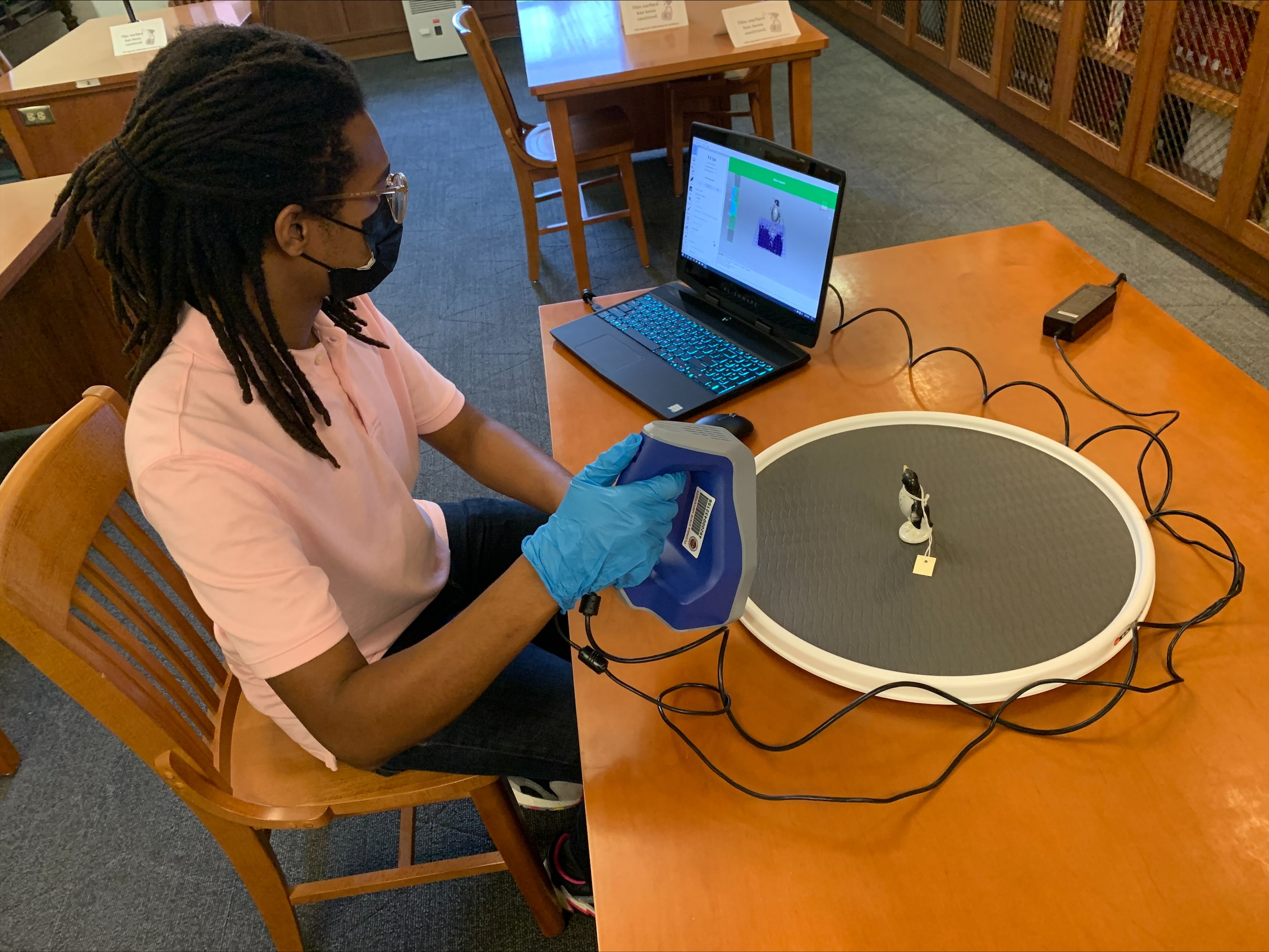 When I started working as a GA in the Fall semester, I spent the first few weeks exploring the digital tools and technologies available through DRS. I searched online for 3D models of objects and artifacts so that I could compare the differences in print quality between the two 3D printers available; I played around with the virtual reality (VR) headsets, web-swinging around New York City as Spider-Man; I used a handheld 3D scanner to scan rare and unique objects from FSU Libraries’ Special Collections and Archives Division (SCA); and I spent time researching examples of museums and universities that were similarly increasing efforts to utilize 3D digital technologies within their public programs and services. Though this work was largely experimental, it was ultimately dedicated towards establishing the research and educational value of incorporating these digital technologies within research projects, collections, and museum exhibitions, while similarly navigating the challenges that will inevitably arise when utilizing these tools.